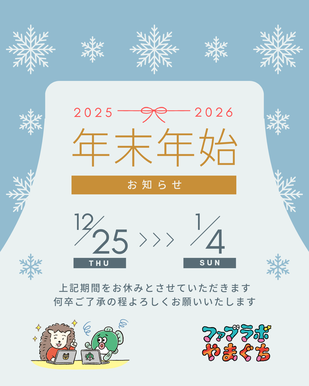 青 シンプル イラスト 年末年始 お知らせ Instagram投稿